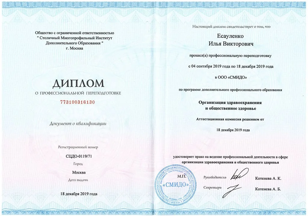 2017 г.  ООО Многопрофильный Учебный Центр Дополнительного образования «Образовательный стандарт» в г. Москве по программе «Общая врачебная практика (семейная медицина)»